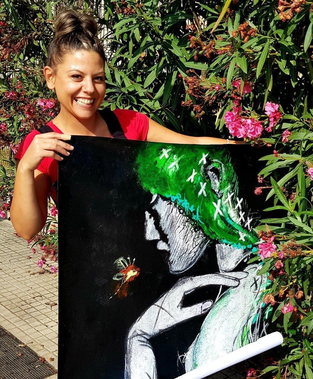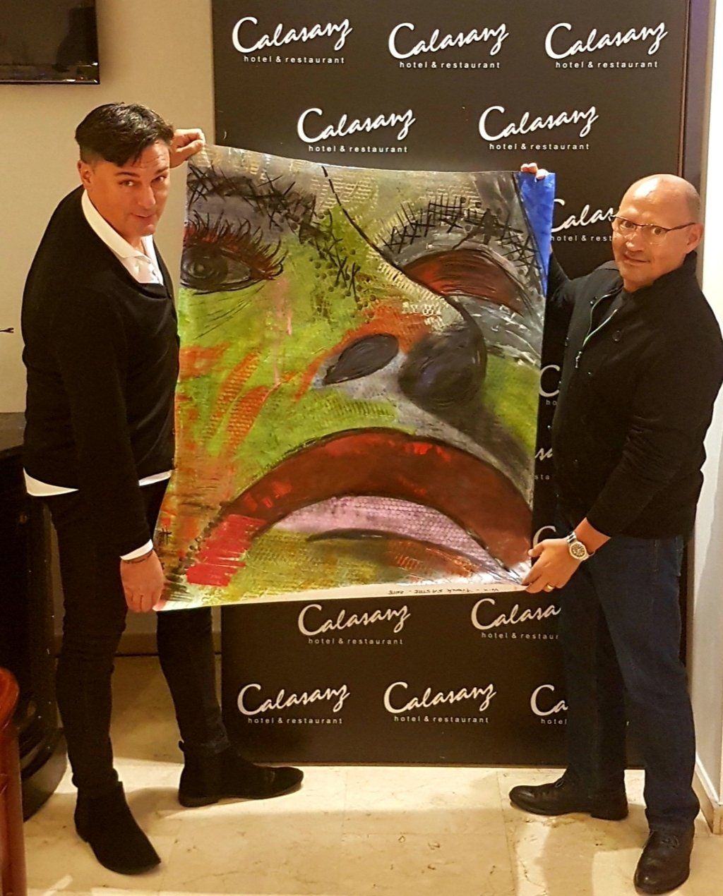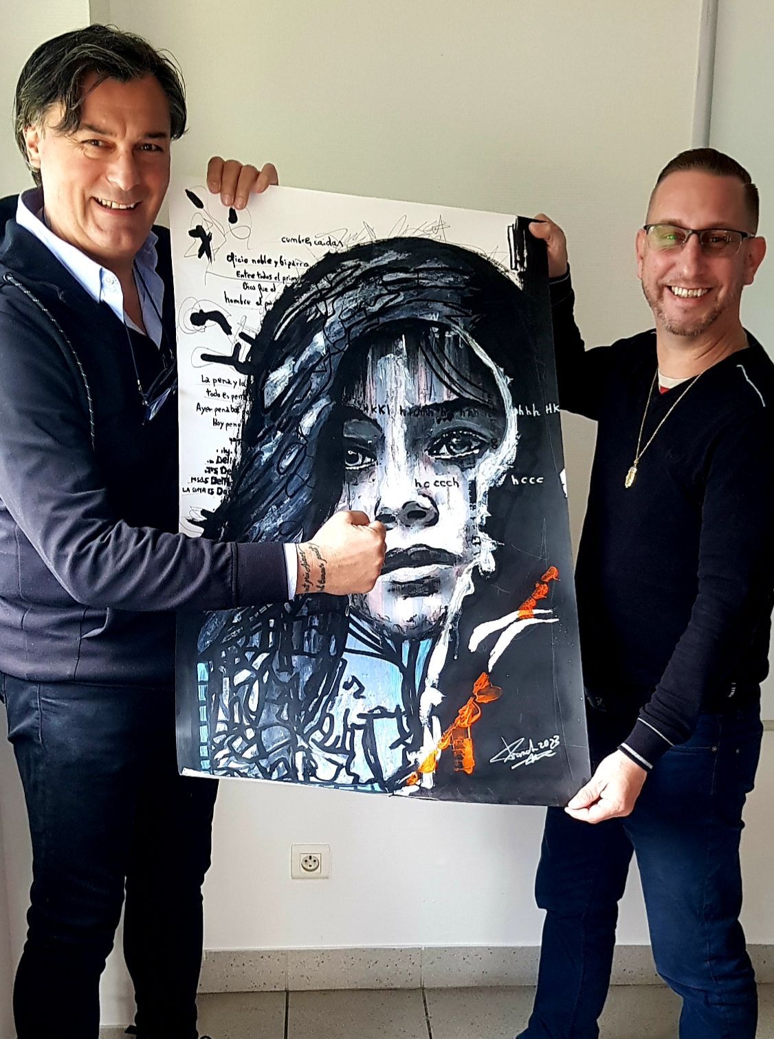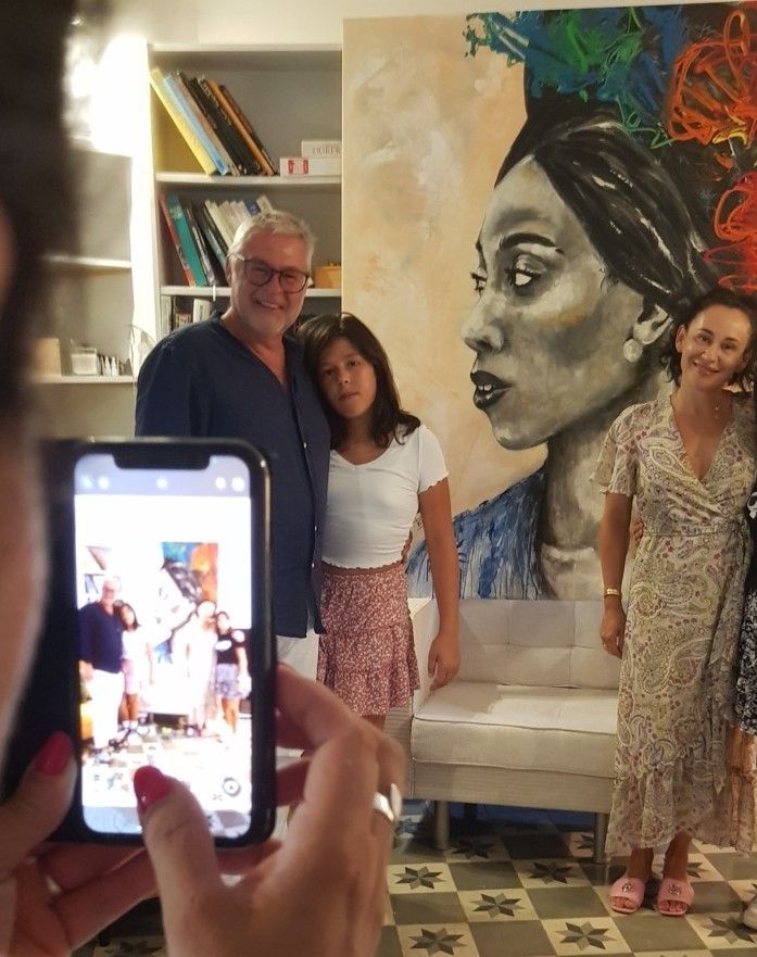Entregando el retrato pintado a duo con Asun Glez & Franck Sastre para Alerit de Venezuela, la cual quedó encantada y sorprendida muy favorablemente.